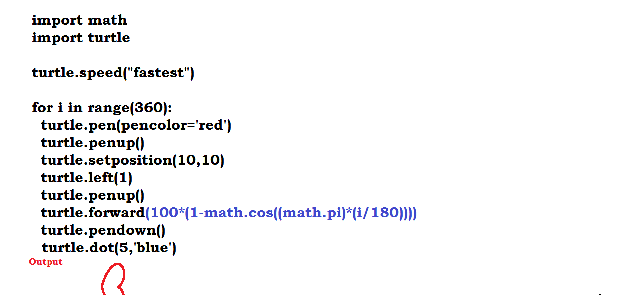 Graphing in polar coordinates is an interesting topic in Mathematics Without using (x,y) coordinates it is easy to draw any curves Cardioid is one such curve with r=1-CosA The python turtle code creates cardioid See the code and and its output